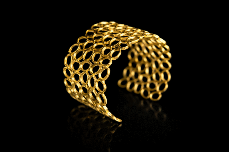 Αυτό το χειροποίητο βραχιόλι είναι μια μοναδική δημιουργία που αγκαλιάζει αρμονικά τον καρπό σας. Αποτελείται από αμέτρητους οβάλ κύκλους, που δημιουργούν μια minimal και κομψή αίσθηση. Είναι φτιαγμένο από ασήμι 925,και η επιχρύσωση κ24 προσθέτει μια λάμψη και ζεστασιά, κάνοντάς το ιδανικό για κάθε περίσταση. Κάθε στοιχείο του είναι προσεκτικά σχεδιασμένο για να ενσωματώνει στυλ και ευελιξία, προσφέροντας μια διαχρονική πινελιά στην εμφάνισή σας. Ένα κομμάτι που ξεχωρίζει, ιδανικό για να ολοκληρώσει κάθε σας look.