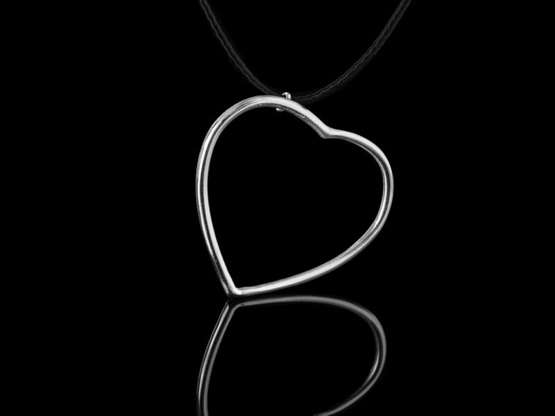 Χειροποίητο ασημένιο μενταγιόν σε σχήμα μεγάλης καρδιάς φτιαγμένο από σύρμα.