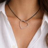 Οι καμπύλες του σύρματος αναδεικνύουν με υπέροχο τρόπο το σχήμα της καρδιάς. Η καρδιά, συμβολίζοντας την αγάπη και τη σύνδεση, είναι μεγάλη και εντυπωσιακή, καθιστώντας το μενταγιόν αυτό ένα κόσμημα που ξεχωρίζει.