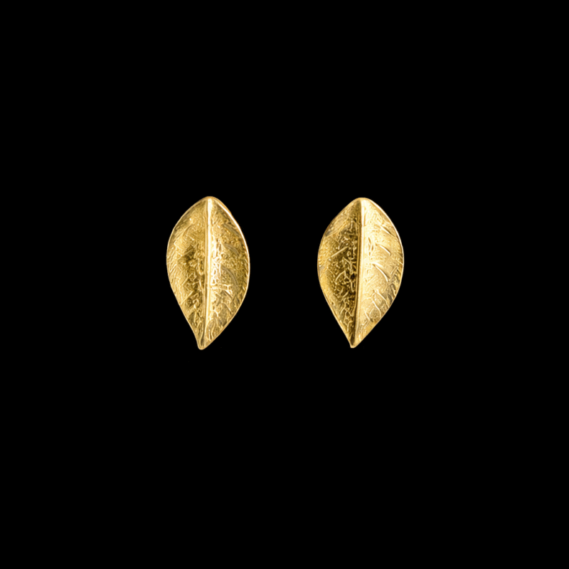 χειροποίητα ασημένια σκουλαρίκια με επιχρύσωση, εμπνευσμένα από τη φύση. Κάθε σκουλαρίκι έχει το σχήμα ενός καλοσχηματισμένου φύλλου, με λεπτομερείς γραμμές που αναπαριστούν τις φυσικές νευρώσεις του, προσδίδοντας μία αίσθηση ρεαλισμού και κομψότητας. Η επιχρύσωση αναδεικνύει τις λεπτομέρειες του σχεδίου και προσθέτει μία διακριτική πολυτέλεια.
