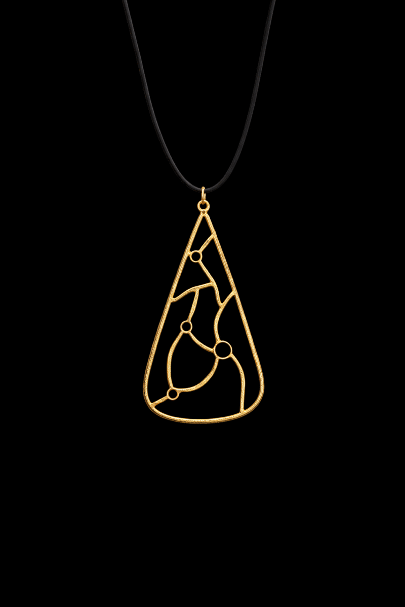 Χειροποίητο ασημένιο μενταγιόν με επιχρύσωση σε σχήμα τριγώνου .